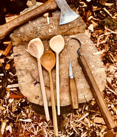 Ručně tesané lžíce z přírodního dřeva.