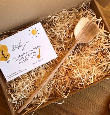 Když vezmu do ruky kus dřeva, nikdy přesně nevím, co z něj vznikne. Všechno začíná u stromu, který rostl desítky let – a teď mi dovolí, abych mu dal nový tvar. Každá lžíce má svou energii, specifickou texturu dřeva, svůj dotek, svou duši. Tesání mě učí trpělivosti a tichu. A já jen doufám, že ten klid a jednoduchost najdete i vy, když ji vezmete do ruky.
