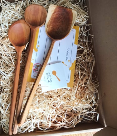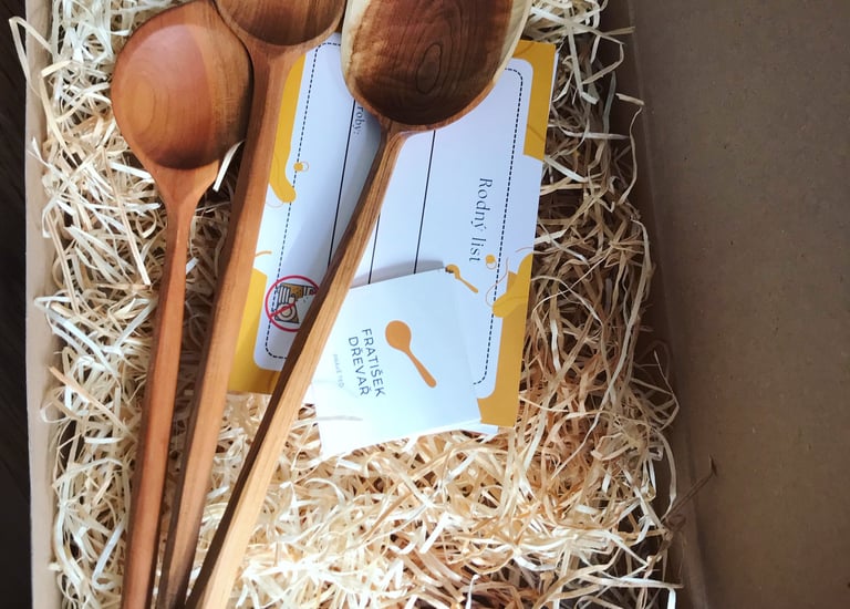 Ručně tesané lžíce z přírodního dřeva.